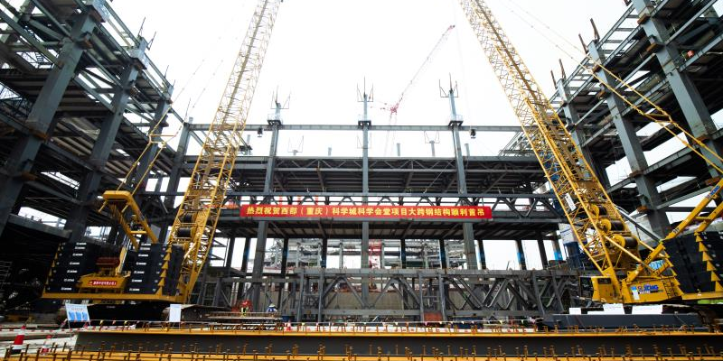 Hualong Network – New Chongqing Client News (Chief Reporter She Zhenfang, Correspondent Wang Chunguang) On the morning of June 19th, as a 72 meter span box shaped sheet truss was slowly lifted into position, the Western (Chongqing) Science City Science Hall project, undertaken by China Power Construction Road and Bridge Group, welcomed the node of the first 72 meter long span steel truss lifting construction, marking the most difficult and complex organization of the steel structure construction of the Science Hall project The stage where innovative technologies are invested the most. The construction of curtain walls and secondary structures will be carried out in the near future, and the main steel structure of the Science Hall project will be capped by the end of September 2023.